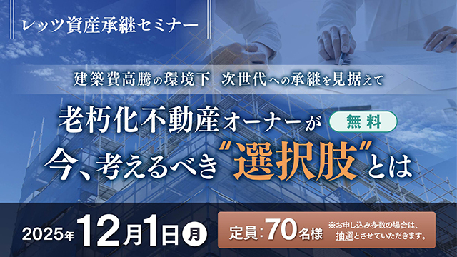 言うまでもなく、「土地活用」を行う土地オーナーは、その土地を相続で取得したケースが大半であり、長寿化に伴い、その土地を相続した時点で、50代半ば以降の年齢であるのが一般的でしょう。また、相続対策としての「土地活用」も多いことから、70歳代以降に、土地活用を始めるケースも多いはずです。その結果、「土地活用」を行っている土地オーナーの平均年齢は、おそらく、70歳を超えているのではないでしょうか。